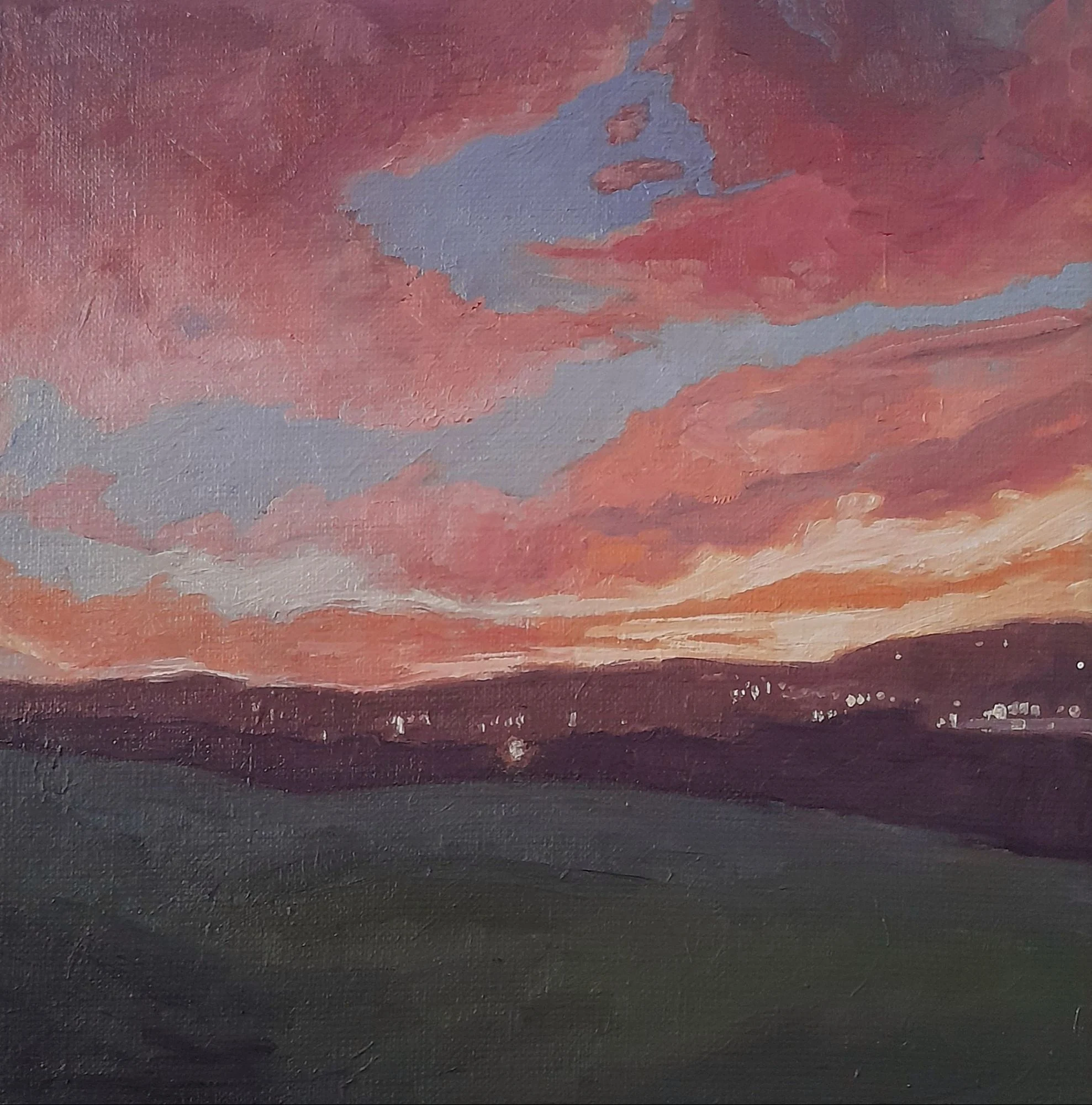 On Sacred Ground - Winter Sunset II, 25cm x 25cm, oil on linen canvas, March 2024